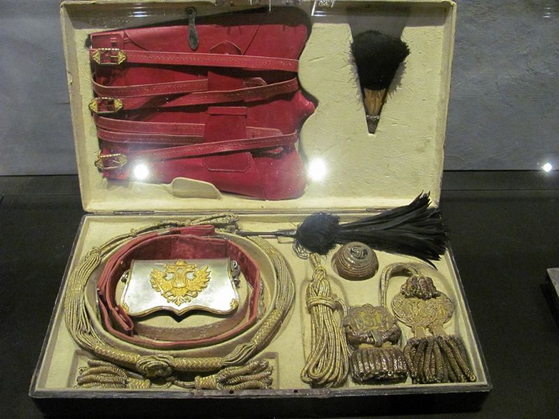 Huszár törzstiszti öltözethez tartozott, az 1855-ös előírásnak megfelelően, az Esterházy-család egyik tagjáé volt. A fraknói várban fotóztam.