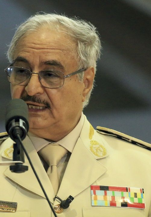 A fotón Halifa Haftár tábornok, líbiai hadúr látható. A szalagsávjai miatt tettem fel, ugyanis kép alapján úgy tűnik, mintha az egész egy rugalmas műanyag lapra lenne nyomtatva.