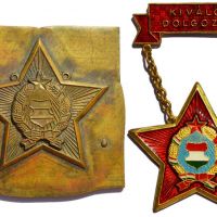 Az elmúlt kor egyik emblematikus kitüntető jelvényének, a "csillagos" Kiváló Dolgozó Jelvénynek az utolsó előtti típusának lapkája és a kész jelvény.
