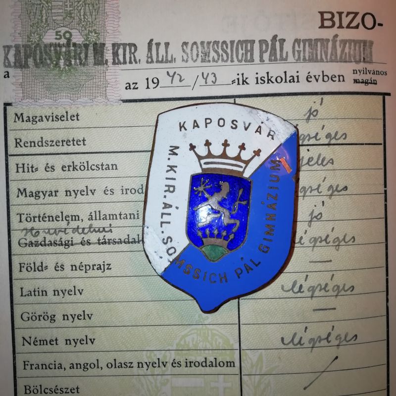 Az iskola két háború közötti sapkajelvénye és egy tanulmányi értesítője.