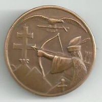 Erről a lemezjelvényről szeretnék információkat. Sem elől, sem hátul nincs jelzés, biztosító tű jellegű tűje van, bronz lemeznek tűnik, átmérője 30 mm