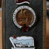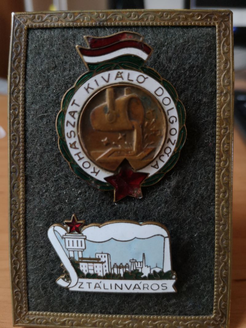 A kitüntető jelvényről volt már szó. Most találtam hozzá egy jól illő propaganda jelvényt is. Nem is gondolná az ember, hogy abban a szegénységben a jelvények készítése még mindig milyen színvonalas volt!