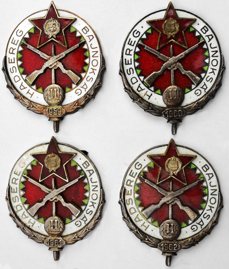 Mint ismeretes, 1959 és 1962 között évszámosak voltak ezek a jelvények. Itt vannak a második helyezettek, ezüst fokozatú jelvényei a négy évből.