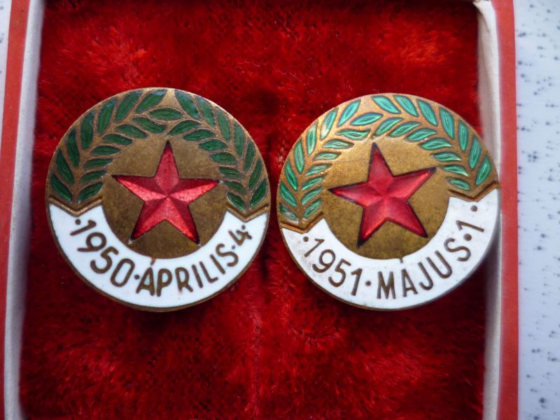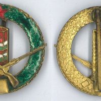 Még az ünnepek előtt vettem egy szatyor szoci jelvényt, szinte vakon, sötétben, csomagtartóból… Valami oknál fogva szeretek így venni dolgokat. Itthon a válogatásnál előkerült ez a két darab. Ha jól megnézitek nem egyforma a “festése”, a gamók sem ugyanolyanok, sőt még a fegyverek kidolgozottsága is más.