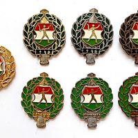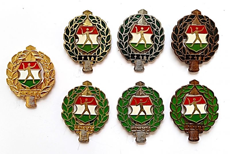 A múlt héten volt szerencsém a meglévő néhány példányomat kiegészíteni az 1981-ben indult BM SZTT jelvénysorban. A SL-on már láttam néhányat belőlük, de sajnos az összes változatot számomra még homály fedi. Az aranykoszorús jelvényen kívül két sor arany-ezüst-bronz változatát őrzöm, érdekesség, hogy az egyik sorozat gamóval rögzíthető, míg a másik (a későbbi) már tűs megoldással jelent meg. A hozzám került példányok némelyikét sajátos módon alakították át, a gamók pántjai közé fordítva felragasztottak egy betétszámot (Kiváló.. Élenjáró... sorokhoz lehetett külön rendelni) és így megkönnyítették a felhelyezést a zubbonyra, immáron csavaros megoldással.