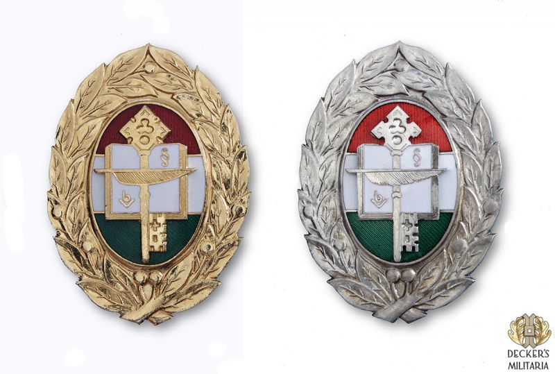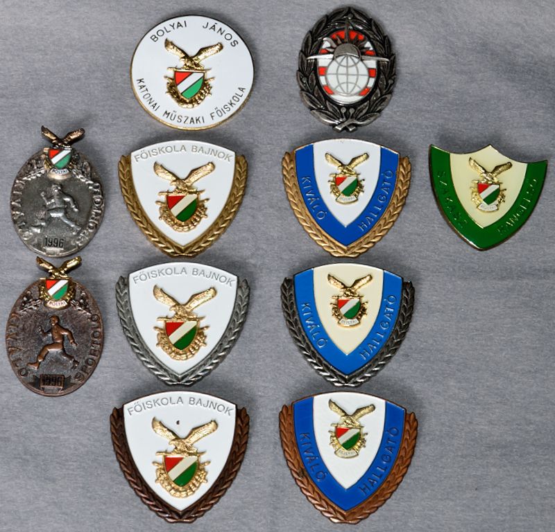 Az egyetemi és a főiskolai végzettségi jelvény. Utóbbit meglehetősen ritkán láttam ezidáig mind viselve, mind a börzéken és árveréseken.