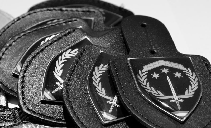 A rendszerváltás utáni kevés belügyi jelvények egyik. A Kormányőrség civilben szolgálatot teljesítő objektumőrei viselték 1990 és 1992 között.