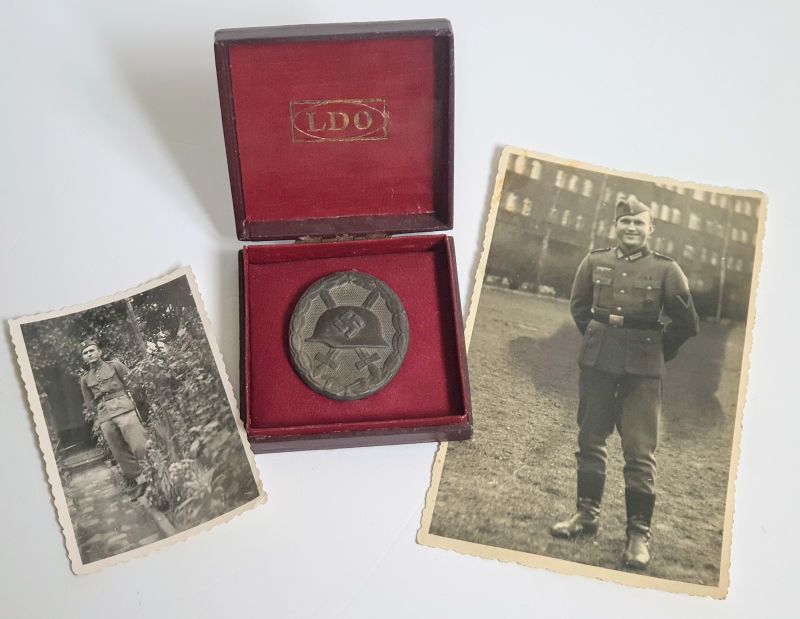 Szeretném ezt az érdekes szettet megmutatni nektek. Sajnos a katona neve nem ismert. Annyi biztos, hogy Sziléziából került elő. Lomisok akadtak rá majd tőlük került egy lengyel ismerősömhöz, aztán hozzám. A képen látható katona a lengyel hadsereg állományában kezdte a háborút, majd gondolom, mint sziléziai németet a megszállás után besorozták a Wehrmachtba. A hagyatékban volt az ezüst sebesülési jelvénye amelyet a katona 3 vagy 4 könnyebb sebesülésért , vagy egy súlyos sebesülésért, halláskárosodásért, egy kéz, egy láb, szem, agy károsodásért vagy az arc sérüléséért kaphatott meg. További érdekessége a jelvénynek, hogy "L" kódos, ami azt jelenti, hogy ez nem az a darab amit a hadsereg adományozott a részére hanem amit saját magának vásárolt, mint másodpéldányt az erre kijelölt üzletben.