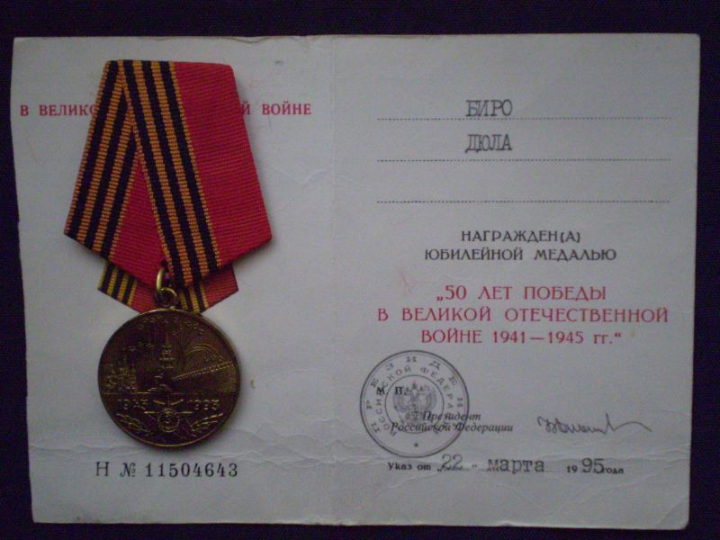 Ez egy "hivatalosan" létező kitüntetés volt? Az úriember részt vett önként a Vörös Hadsereggel együtt Budapesten a fasiszta csapatok elleni harcban melyről igazolás is van, később tagja volt a Magyar Antifasiszták és Ellenállók szövetségének is.