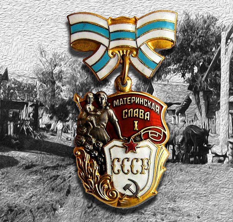 A háromdarabos szovjet anyasági érdemrend-család legmagasabb fokozata. Nagyon szépen szerkesztett és csúcsminőségben megvalósított kitüntetés.