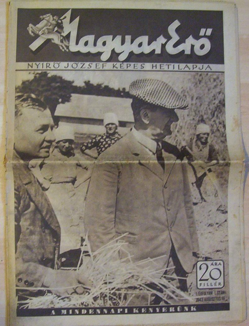 Magyar Erő című képes hetilap 1942 augusztusából. A lap elején Horthy Miklós ismerhető fel.