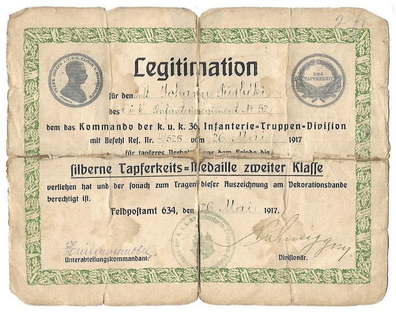 Két érdekesség, az egyik, hogy IV. Károly 1917 április 04-el adta ki a Vitézségi Érmet saját arcképével, ez az igazolvány viszont május 26-án azért még az érem régi képével kiadásra került. Vélhetően a kiadott érem is még FJ-es volt (kaptam is hozzá egyet). Érthető módon kellett idő az átállásra.