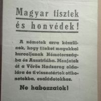 Propaganda lap Bíró Gyula, az Önkéntes Budai Ezred katonájának hagyatékából, átállt a Vörös Hadsereg oldalára és részt vett Budapest elfoglalásában/felszabadításában. A lap hátsó oldala is érdekes.