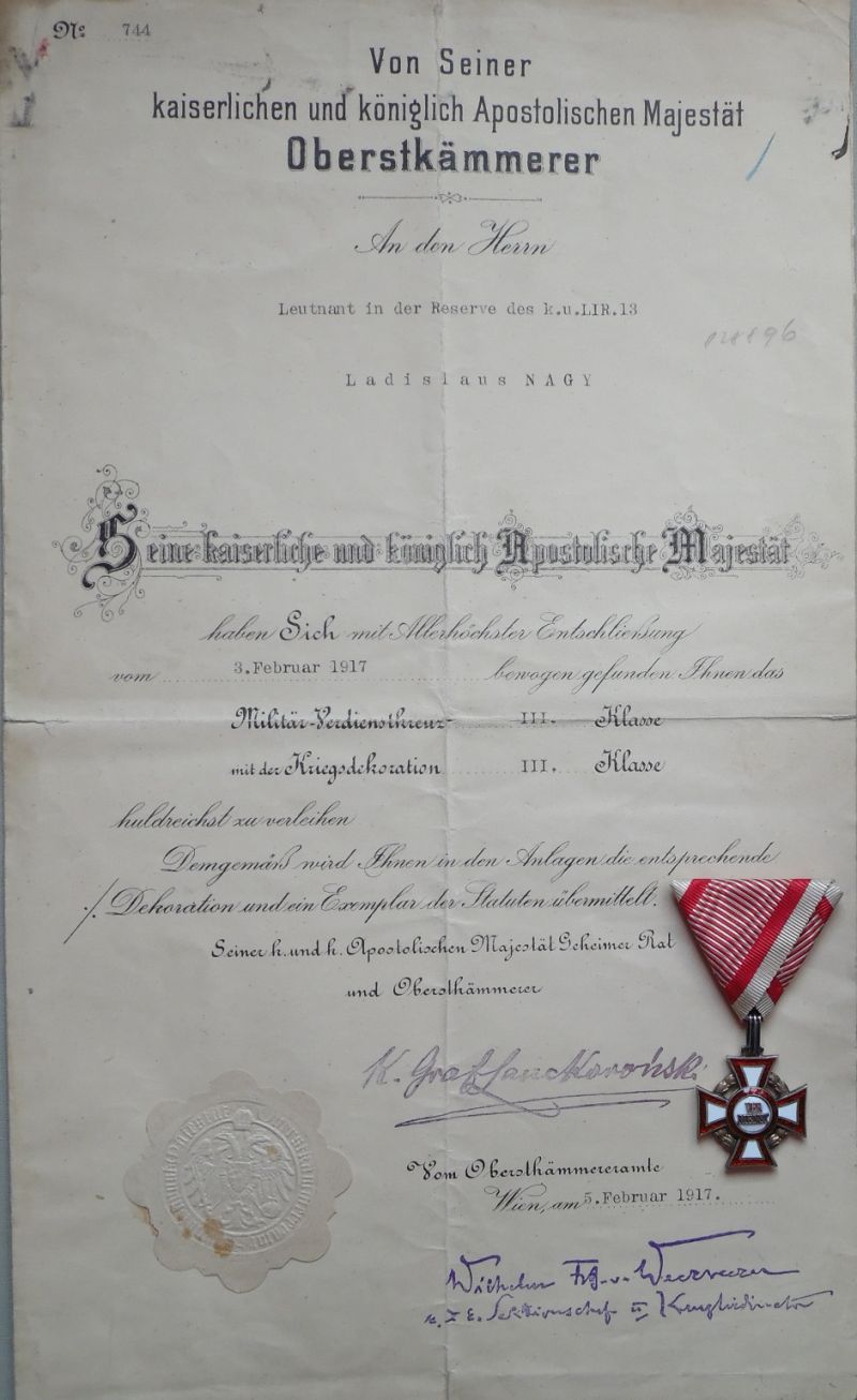 Az érdekessége ennek az adományozó okiratnak, hogy ekkor - 1890-1911 között - még egyosztályos a kitüntetés.