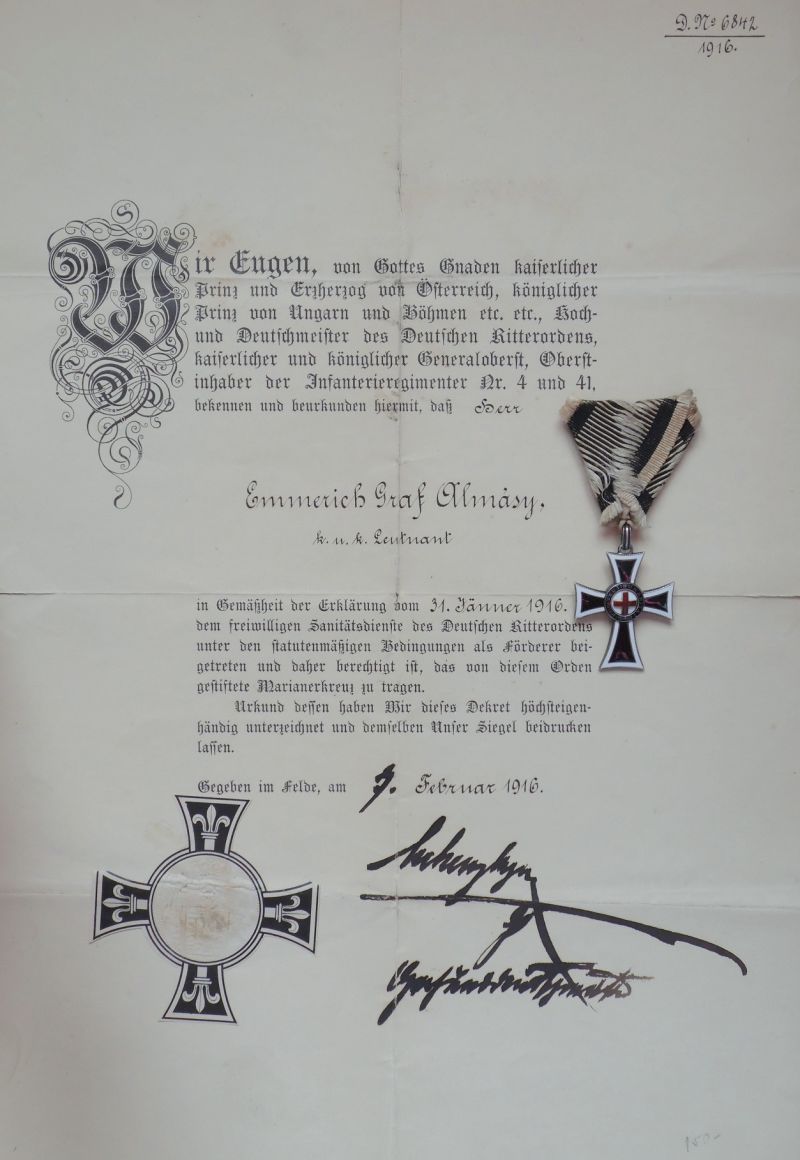 Horthy II. osztályú Tiszti Katonai Szolgálati Jel adományozó irata Silley Antal tábornok részére