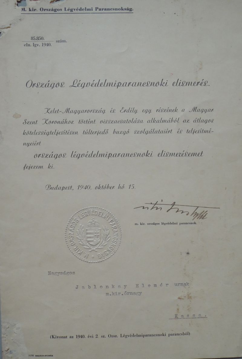"Országos Légvédelmiparacsnoki elismerés" - 1940