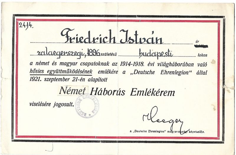 Ismert igazolványféle, de láthatóan a "Német" szó ráragaszt rátét. Nem utólagos javítás, mert a pecsét rendesen fedi.