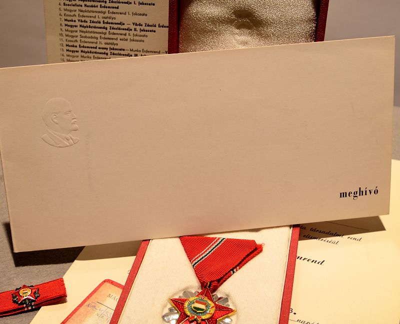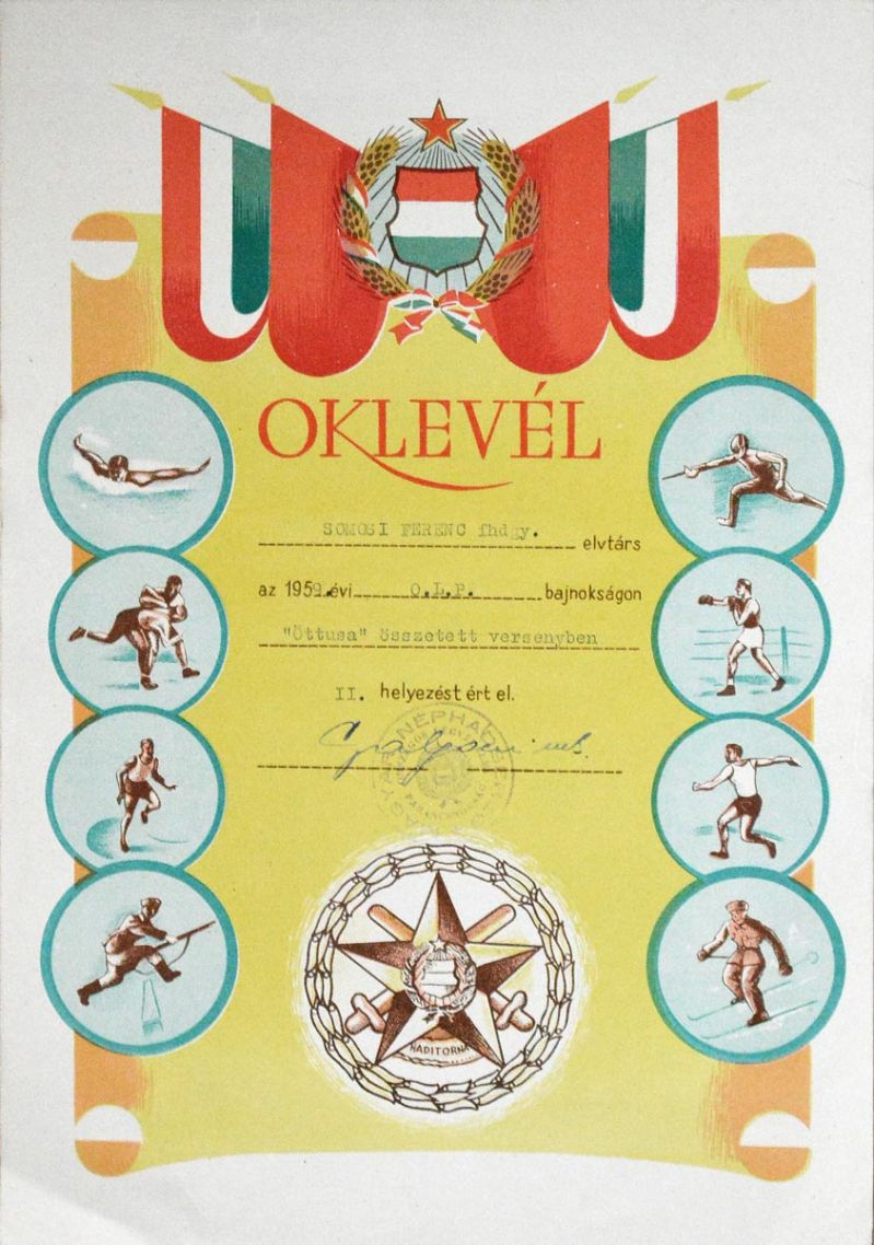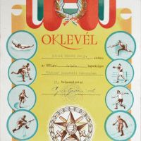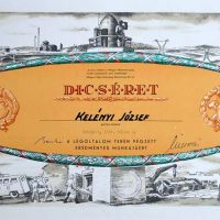 Érdekes, hogy az oklevélen az egyetlen alkalommal, 1955-ben adományozott, nagy kerek alapra helyezett, jelvény látható, igaz, "Kádár-címerrel" rajzolva, amilyen jelvény viszont nem is volt a valóságban.