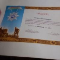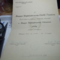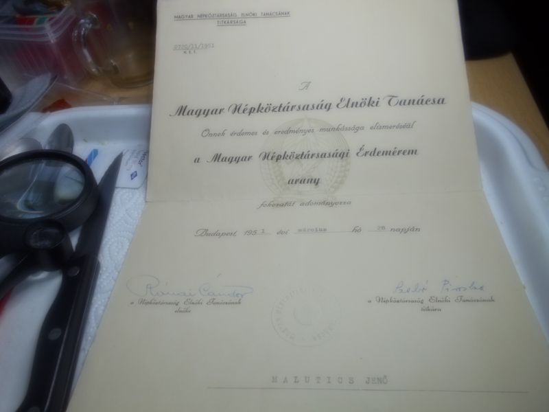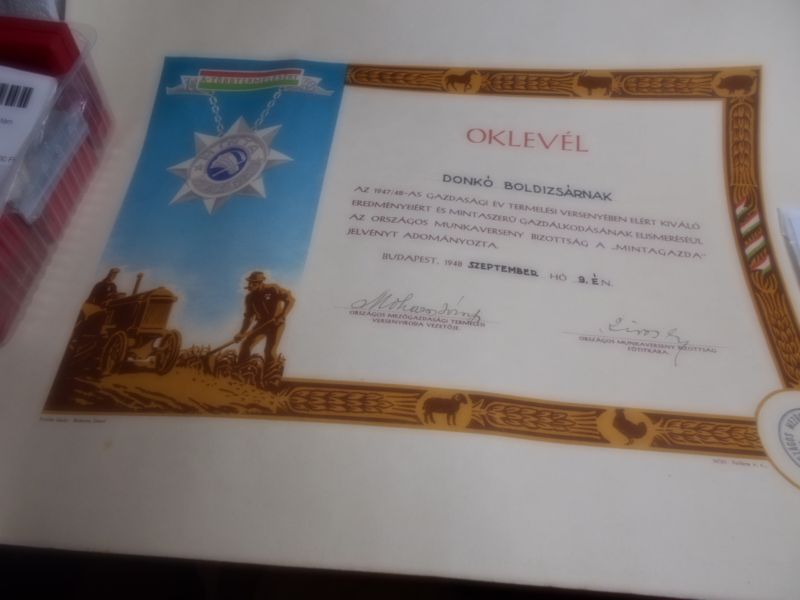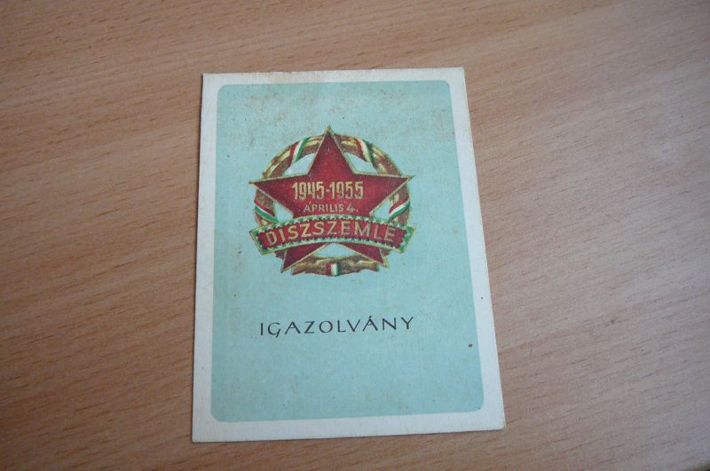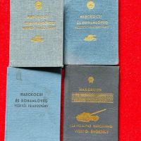 Részben kitöltetlen, részben fényképes kitöltött igazolványok, osztályos jelvényekkel.
