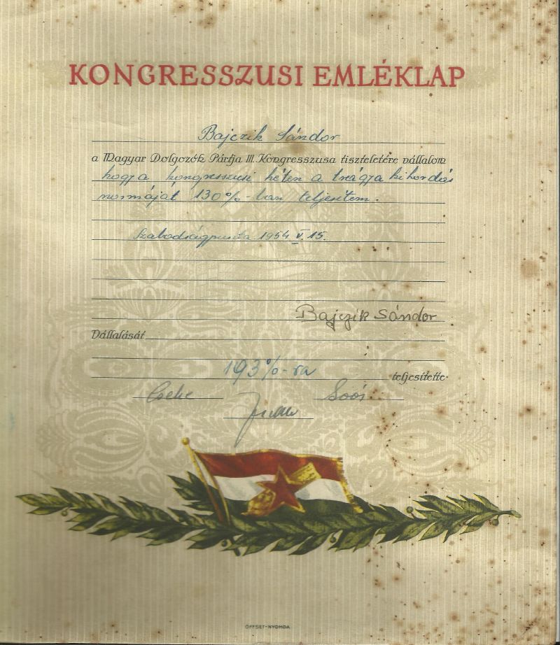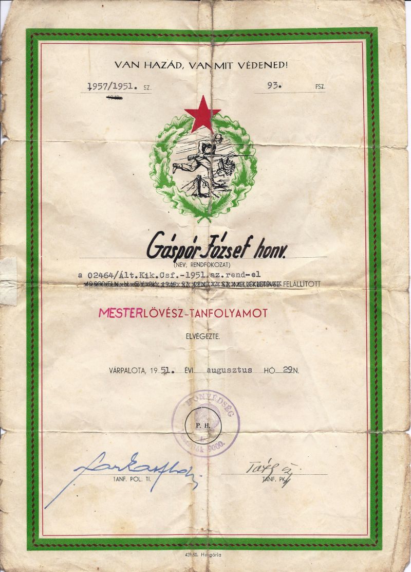 Nagyapám testvérének az oklevele, aki 1956-ban emigrált. Érdekességképp a "MESTER" szót utólag írták bele. Gondolom így költséghatékonyabb volt.