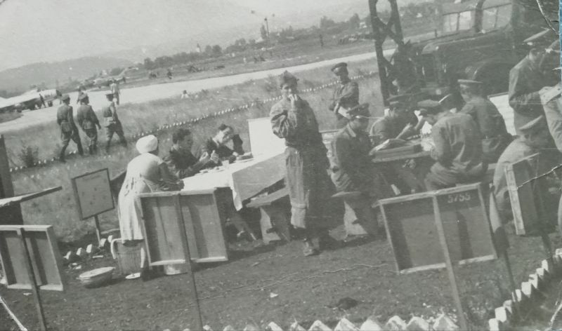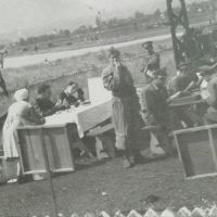 A fotó az 1950-es években készült, háttérben a falu. (Saját gyűjtemény része.)