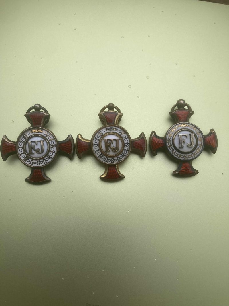 Mint oly sokan a monarchiás anyagok gyűjtői közül, én is rajongok az arany és ezüst érdemkeresztekért. Ez a darab különlegesnek nevezhető, tele zománcos medallionja miatt. Hátoldala is zománcos. Bronz anyagú, gyártójel nélküli darab, az arany anyagú Rothe féle darabokat juttatja az ember eszébe, de szerintem nem az. Szalagja is eredeti, de arról nem vagyok meggyőződve hogy világháborús adományozás, szerintem inkább 19. századi darab és eredetileg piros szalagon adományozhatták.