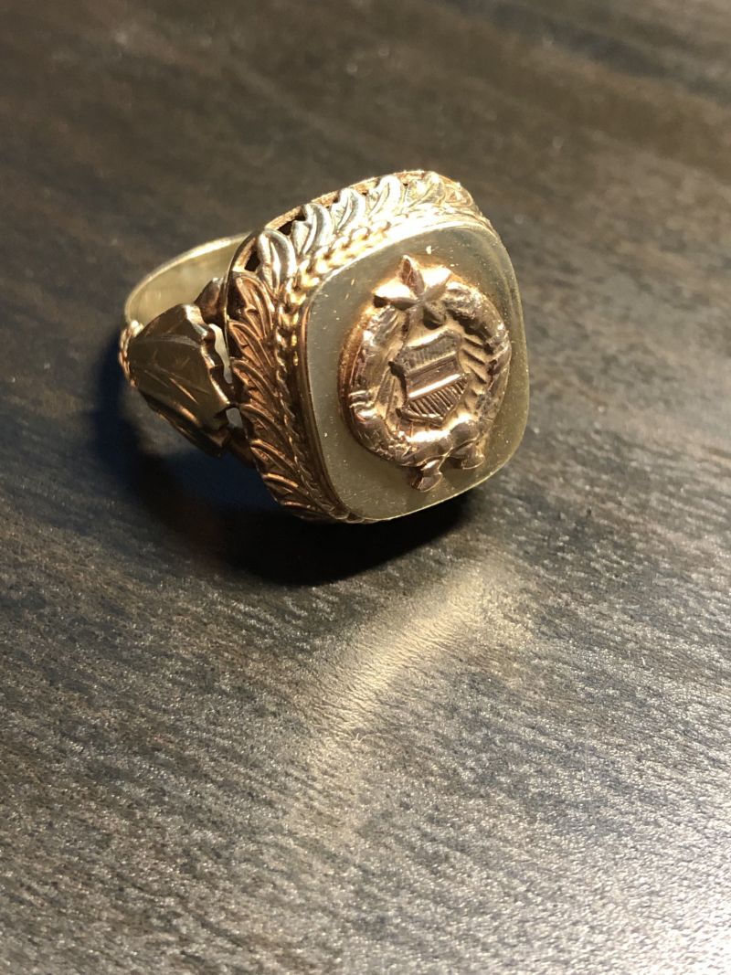 1990 év után adományozott BM 50. éves jubileumi aranygyűrű.