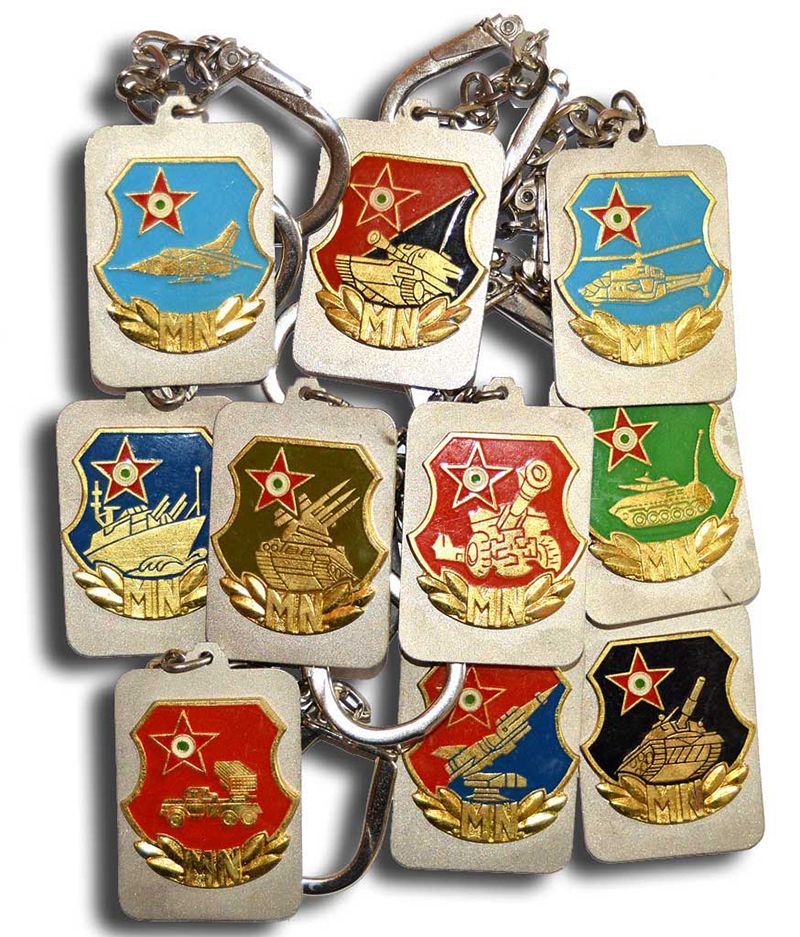 A kulcstartókon lévő jelvények ismertek, s egy korabeli MN jelvénysor darabjait alkotják. Akkori reklámanyagként kulcstartónak is elkészültek a Magyar Néphadsereg népszerűsítése céljából.