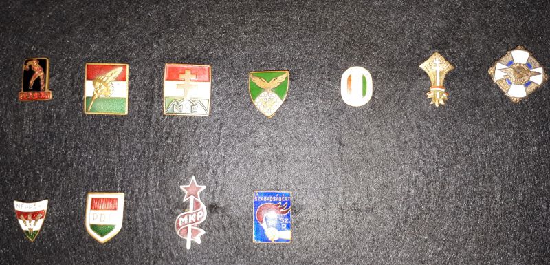 Egy hét alatt összeszedtem egy kisebb pártjelvény gyűjteményt. A felső sorban a II. vh. előtt alapított magyar pártok jelvényei láthatók, alatta pedig már a háború után alapítottak... Természetesen egyik sor sem teljes, de így sem rossz.