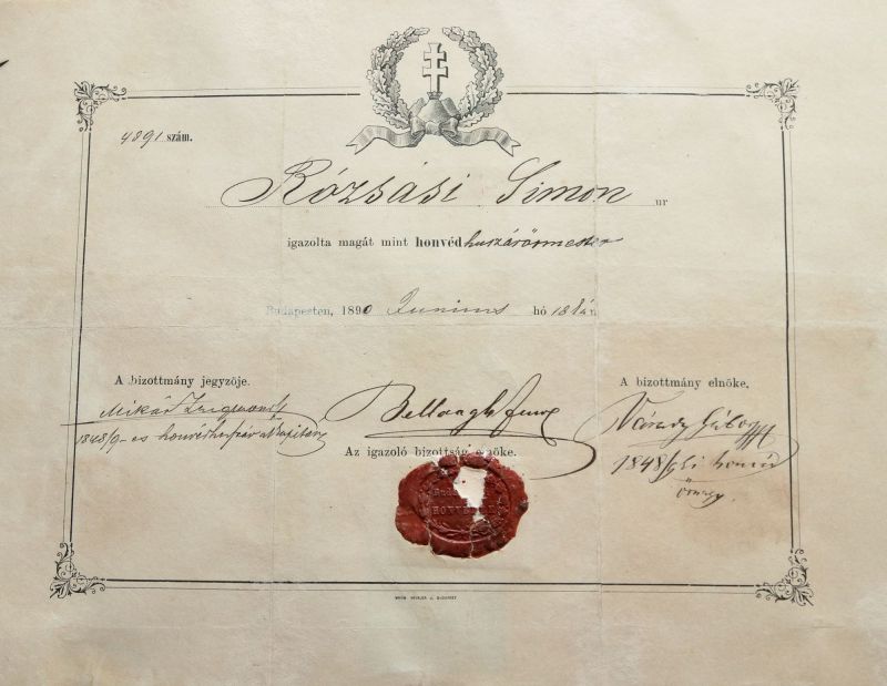 Ha már közeleg március 15-ike akkor gondoltam felrakom a fórumra egy volt huszárőrmester igazolási papírját 1890-ből. Megvan hozzá a kitüntetés amit kapott, a nevével ellátva. A papír rozoga állapotban volt amikor megvettem. A hátoldalára papír volt ragasztva ki tudja miért, de szerencsére sikerült restaurálni.