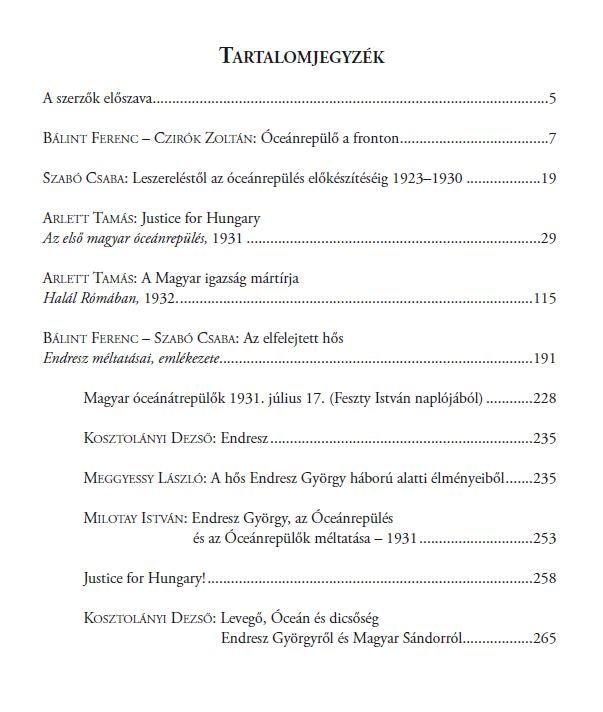 Mindenkinek jó szívvel ajánlom a kötetet, akit érdekel az I. világháború, az óceánrepülés, valamint Endresz György élettörténete. Könyvünk talán lehetőséget ad majd arra, hogy Endresz György végre (újra) elfoglalhassa azt a helyet, amelyet megérdemel a magyar repülés történetében!