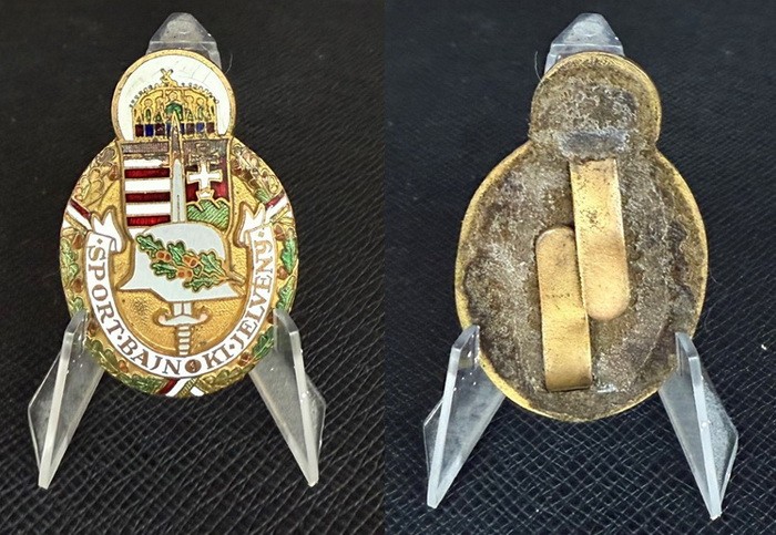 Az egyik legritkább magyar jelvény a Horthy korszakból, 232 nyilvántartott adományozással. Sajnos vannak rajta zománchibák, de a hátsó gamói is megvannak, sőt az eredeti alátét posztója is rajta van. Ár privátban, de nem lesz olcsó.Esetleg csere is.