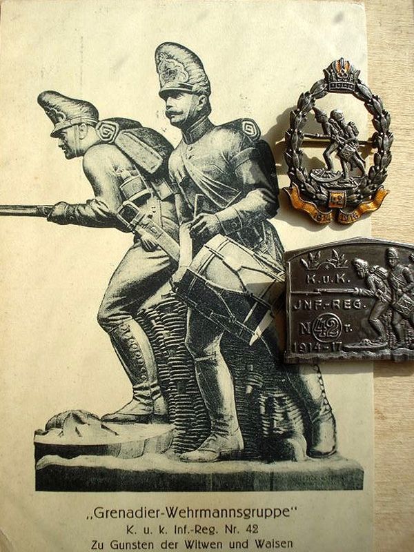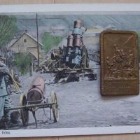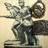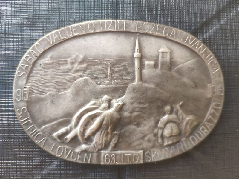 Ezt a plakettet most vettem, az alakja és a témája sem szokványos, egészen nagy egyébként (100mmx60mm). A balkáni frontról származó a jelenet, ágyú, hajó, minaret... Nagyon szép, de a rövidítéssel nem boldogulok, valamilyen tüzér alakulatnak állít emléket. Talán egy parti üteg? Nagy valószínűséggel sapkajelvény is lehetett belőle.