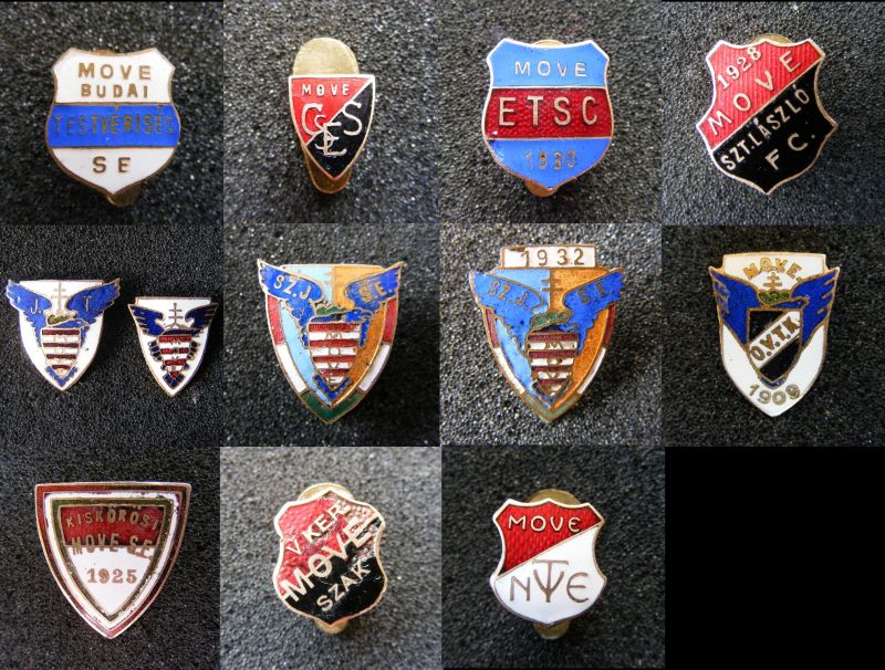 Megosztom veletek gyűjteményem egy részét, a MOVE sportegyesületek jelvényeit. Rengeteg MOVE sportklub működött a két háború között, sajnos csak kis töredéküknek volt jelvénye. Ezeken kívül ismerjük pl. a Cegléd, Eger, sőt az FTC MOVE SE.... stb jelvényét is. Van valakinek ilyen jelvénye, ami nem szerepel a képen? Nagyon örülnék a fotójának.