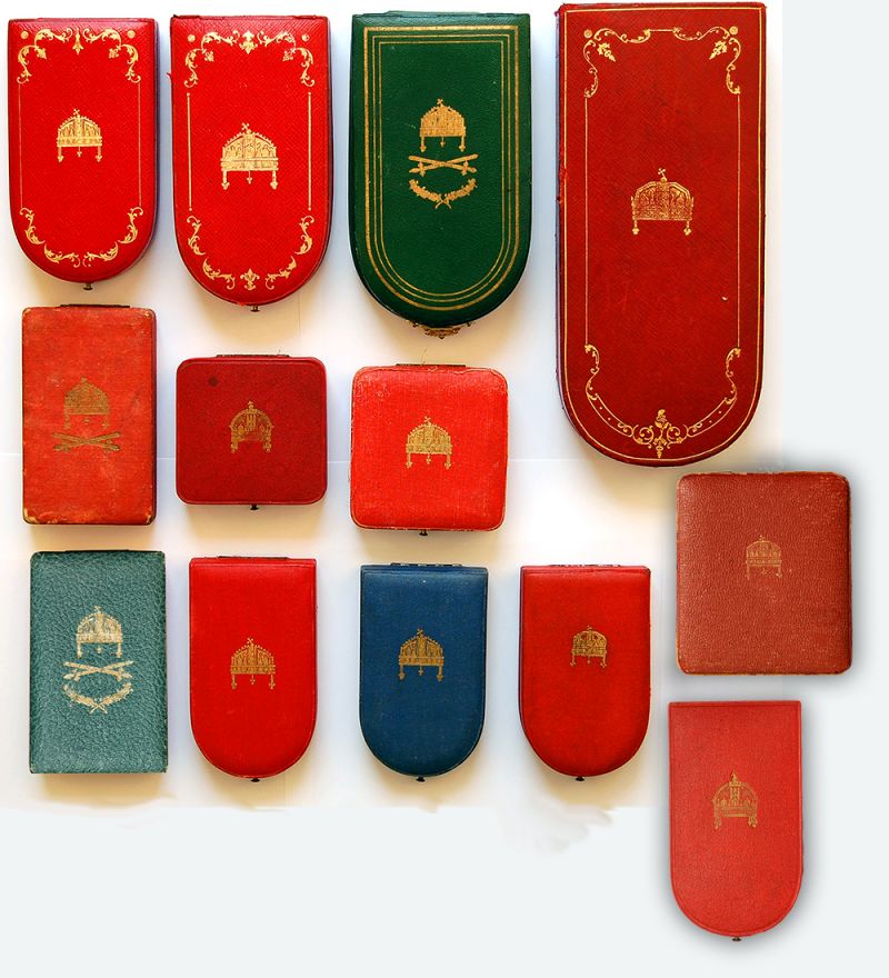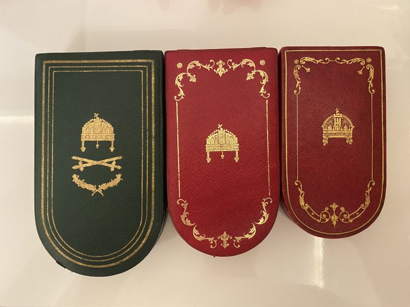 Magyar Szent Korona Rend - Magyar Érdemrend - Magyar Érdemkereszt tokjai (Kérlek engedjétek meg hogy a Magyar Érdemkereszt II. osztályát középkeresztnek tituláljam)