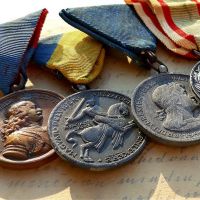 A képen látható kettő Magyar Ezüst Érdemérem "A" beütős bécsi változatai láthatók. A fémjel a fül mellett jobbra, a másik éremnél balra található.