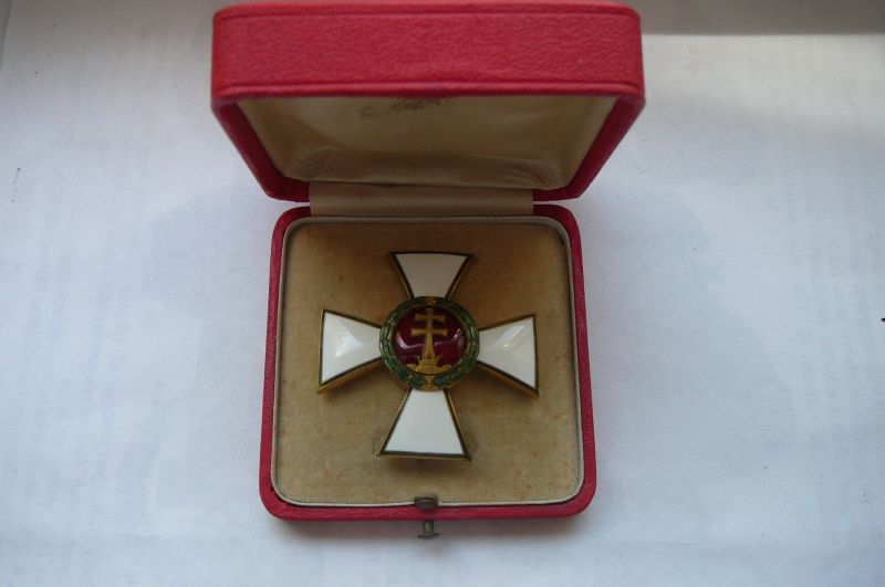 A Magyar Érdemkereszt "tisztikeresztje" tokjában