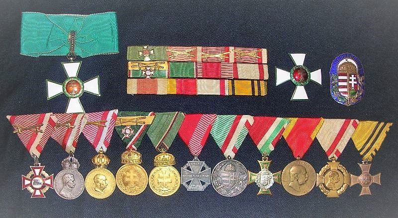Vitéz Doóry (Klemm) László m.kir. csendőrtábornok szalagsávsora - és rekonstruált kitüntetései. Tehát csak a szalagsáv az övé, a kitüntetéseket csak én állítottam össze.