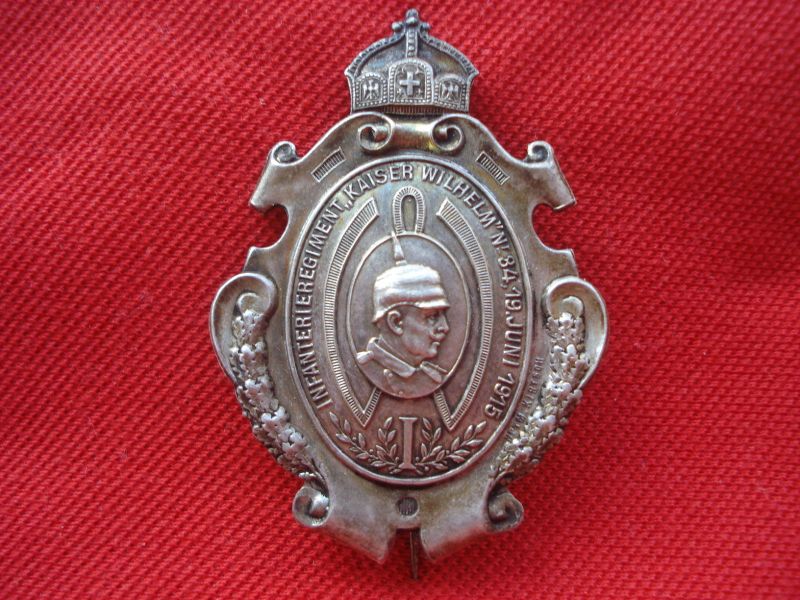 A német, a Habsburg és magyar színek, a két uralkodó, az évszám és a jelmondat, jellegzetes patriotika jelvény az első világháború elejéről.