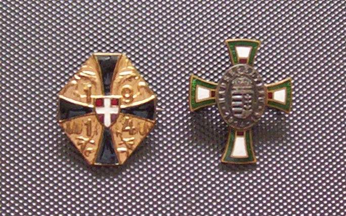 Azt, hogy a m.kir.-i vagy a k.u.k. 32 gyalogezredé nem tudom megmondani, mert mindkettő sötétkék színű volt. Gomblyuk miniatűr szerintem nagyobb eséllyel magyar királyi gyalogezredé.
