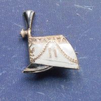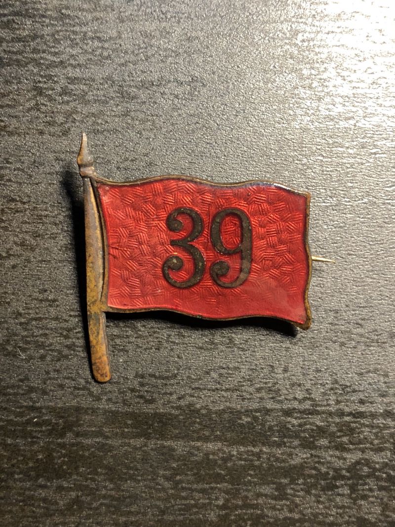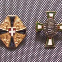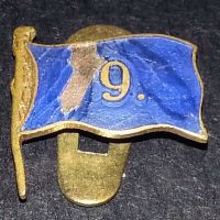Most vettem ezt a - sajnos sérült - kék zászlócskát. Az eladó a 9. cs.és kir. gyalogezred jelvényeként árulta, de az zöld volt. Szerintem a m.kir. 9. gyalogezred gomblyuk jelvénye, talán a mérete miatt ezekre nem rakták fel a címert és az MHKGYE betűket. Jól gondolom? Az fel sem merül, hogy hamis, lásd hátoldali képet.