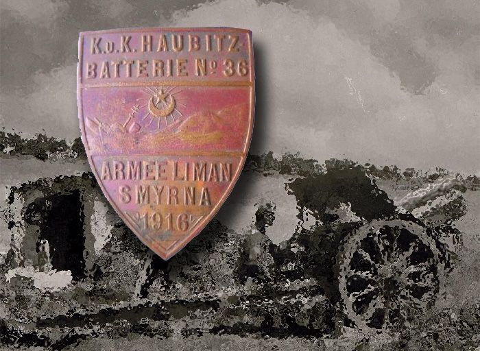 Egy ritka jelvény megtörtént eseményt mutat be: osztrák-magyar tüzérek elsüllyesztenek egy hajót. Sok minden egyéb információ is segít megfejteni a kérdést: