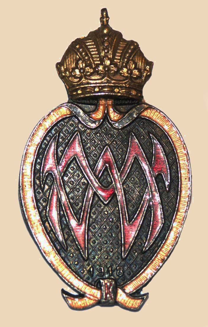 Az évszám és a K monogram miatt, no meg a császári korona révén is én mindenképpen első világháborús sapkajelvényként tartom számon ezt a darabot. De vajon mi lehet az ábra (betűk?) jelentése?