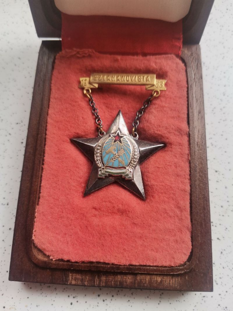 A kitüntetés tucat darab, de a doboza kétséget ébreszt benn. Szépen megmunkált fa doboz, ami minőségileg illene is a benne tárolt jelvényhez, de nekem az eddigiek papír dobozban, "szőrmés" béléssel vannak birtokomban. Lehet ez az egy kivételt képez?