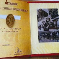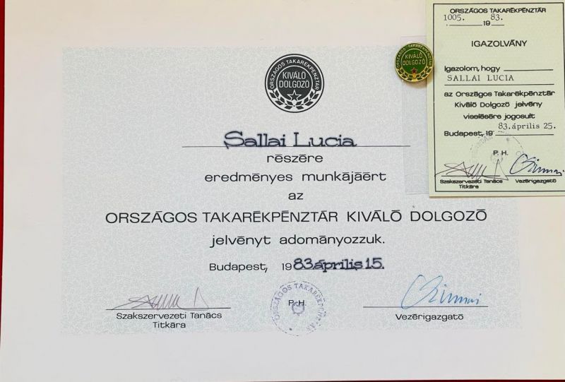 Az OTP kiváló dolgozó jelvénye az adományozó oklevéllel és viselési igazolványával.