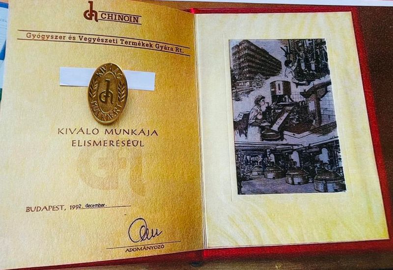 Rövid ideig , és elég kis számban adományozták, ma már a Chinoin elnevezés sem létezik. Az eredeti oklevélről készült a fotó, a jelvény eredeti darab.