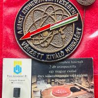 "A PAKSI ATOMERŐMŰ ÉPÍTÉSÉBEN VÉGZETT KIVÁLÓ MUNKÁÉRT "kitüntető plakett és jelvénye.