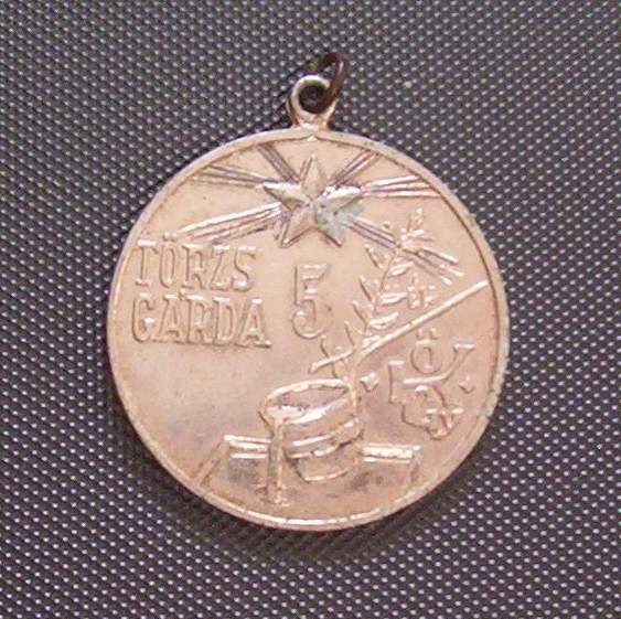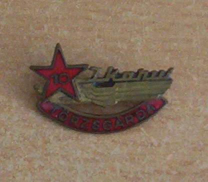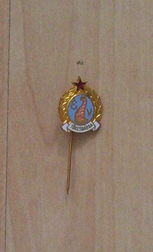 Az Ózdi Kohászati Üzemek 10 és 15 éves törzsgárdajelvényei, köztük az 1989-ig a város címereként funkcionáló kép.
