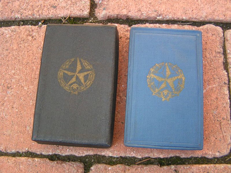 Az MNK Érdemrend III. fokozata (1949) dobozában. Gyártójellel ellátott, nagyon szép szett. A III. fokozat doboza teljesen megegyezik a II. fokozat dobozával, a kitüntetések mérete teljesen azonos.