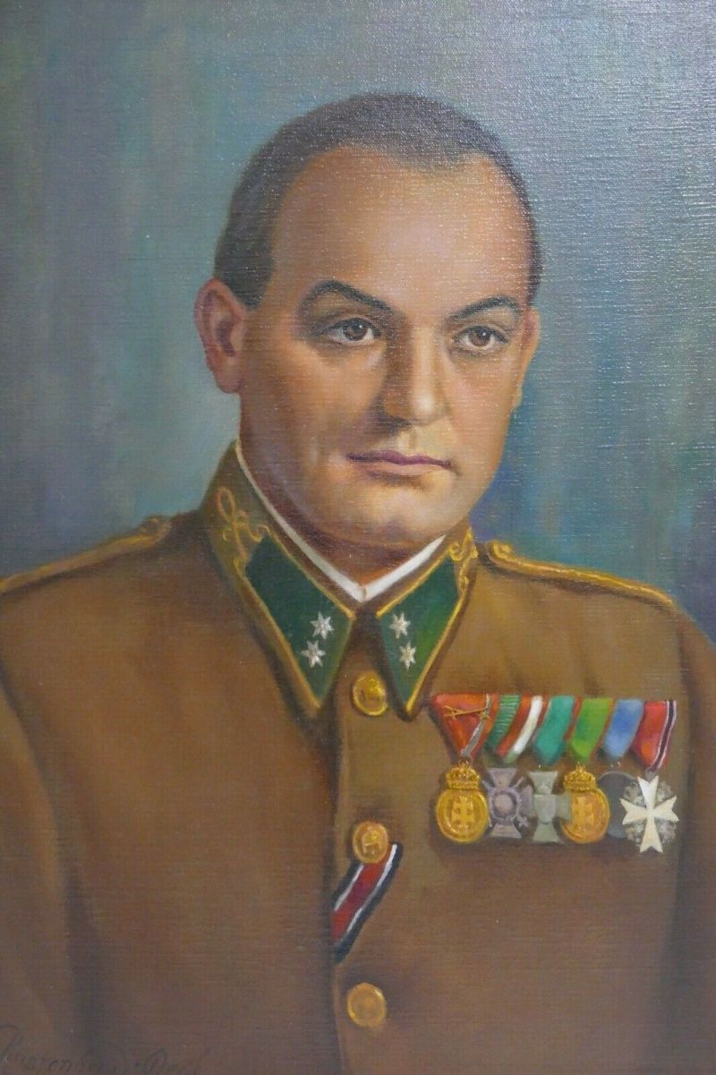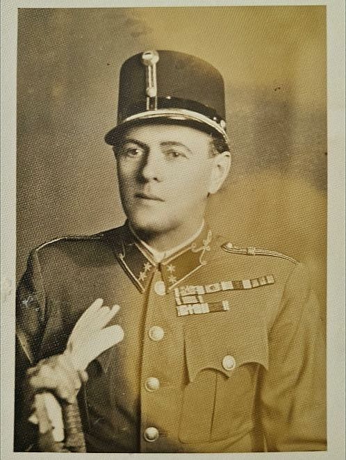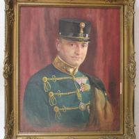 Ami számomra is kiderül; hivatásos gyalogos főhadnagy, akit nem sokkal a háború előtt avathattak tisztté, de már fiatalon felhívhatta magára a figyelmet, erre utal a katonai szalagos Signumja. A hadiszalagos, kardos Signumja mellett II. o. Vaskeresztje és német Sas rendje is van. A német kitüntetései egyikét talán a hadiszalagos, kardos Signummal együtt érdemelhette ki, ugyanazzal a fegyverténnyel, de ez egyáltalán nem biztos. A festő osztrák, ami talán arra utal, hogy a háború végén nyugatra került, elképzelhető, hogy maga a kép már emigrációban készült.